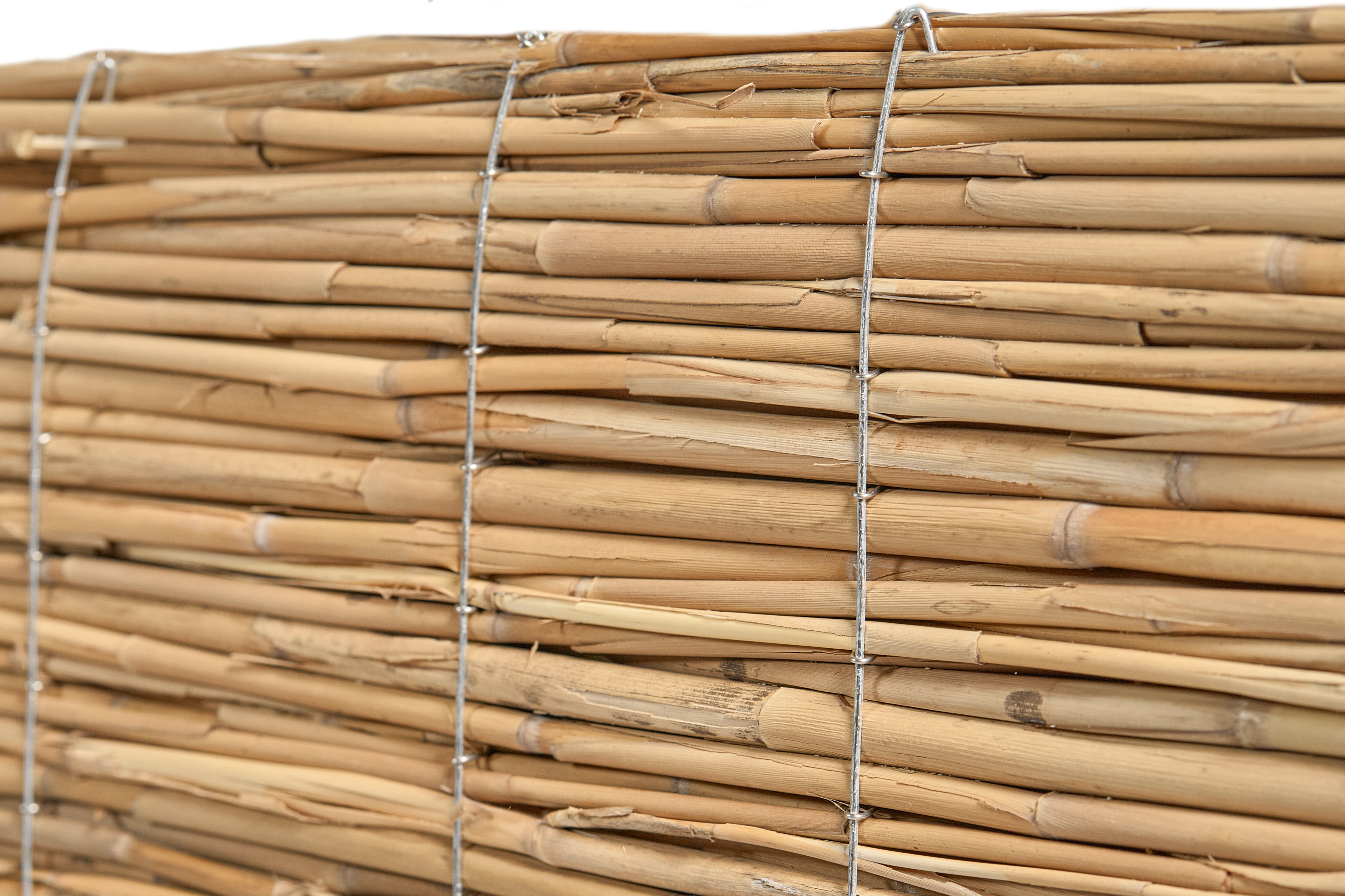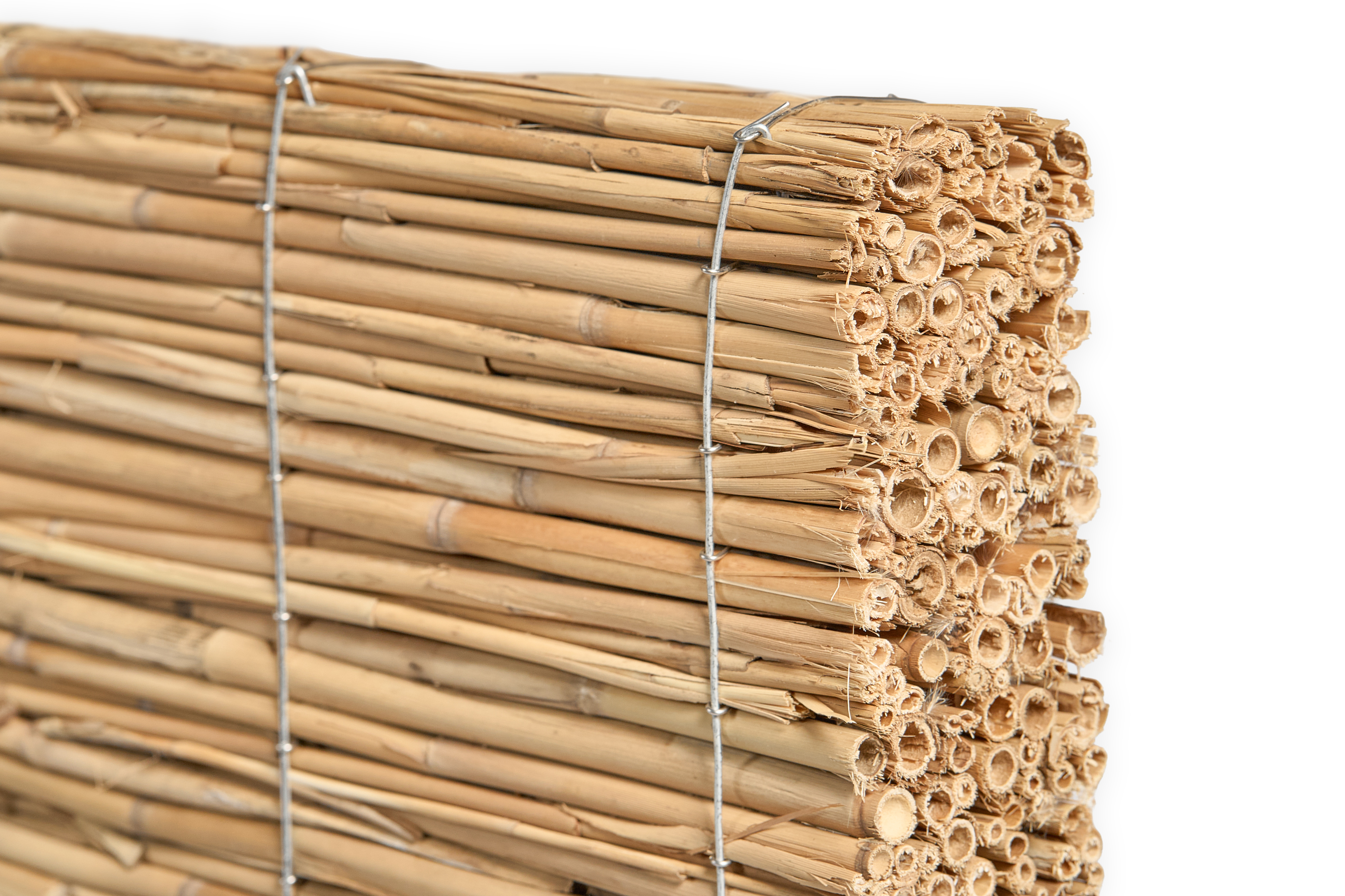 Ausgesuchte Schilfrohrqualität und hochwertige feste Bindung aus 1,8 mm starkem, verzinktem Draht, die Klammern bestehen aus 1,3 mm dickem Edelstahldraht.