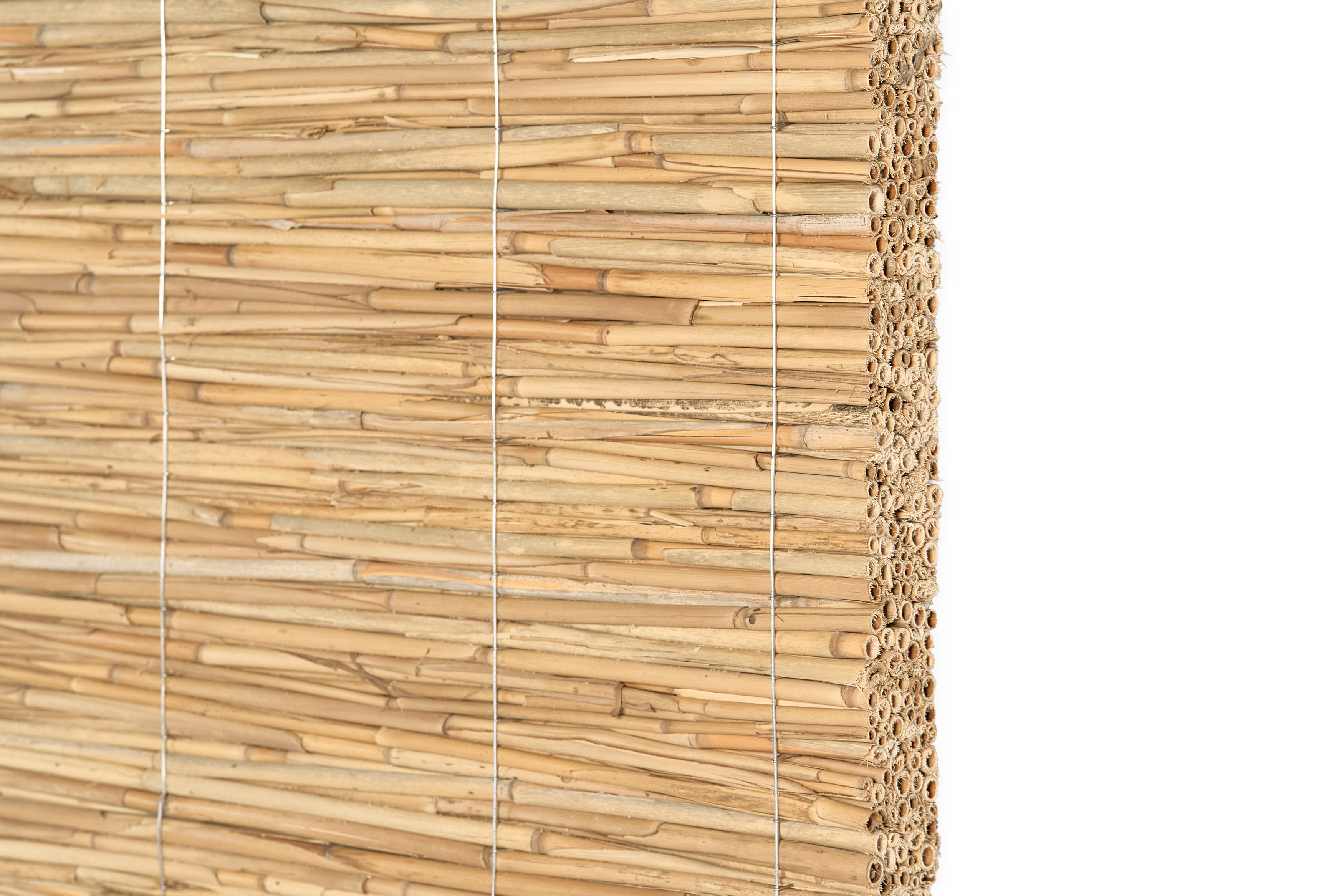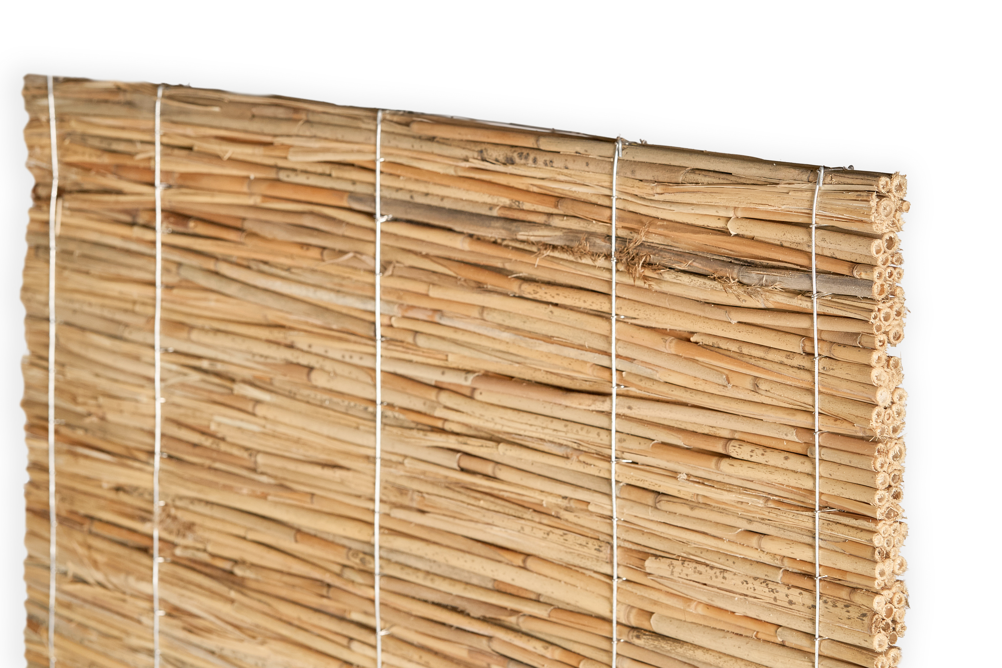 Ausgesuchte Schilfrohrqualität und hochwertige feste Bindung aus 1,8 mm starkem, verzinktem Draht, die Klammern bestehen aus 1,3 mm dickem Edelstahldraht.