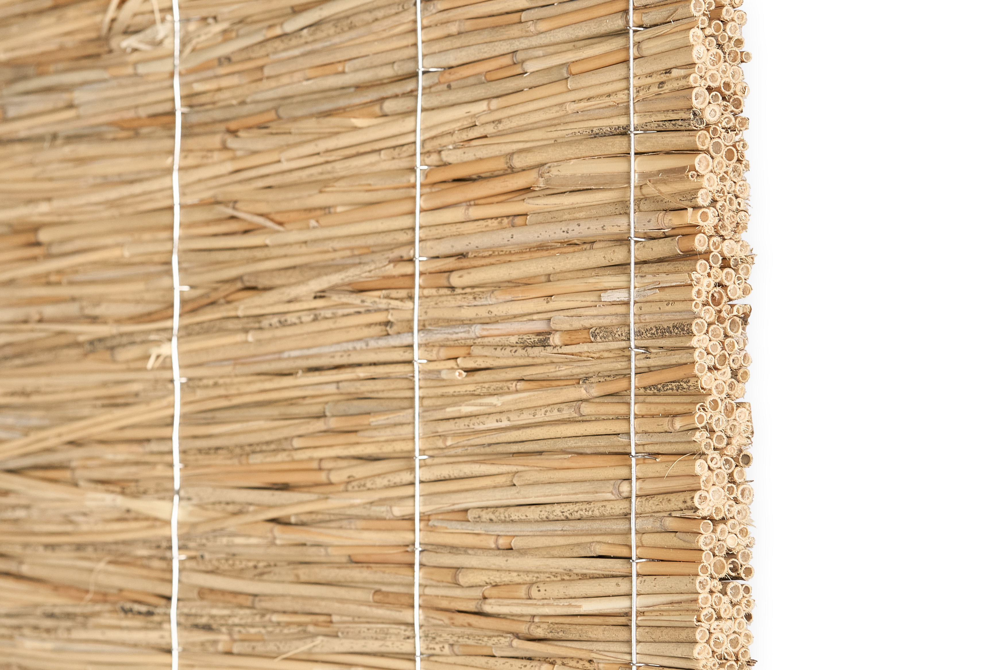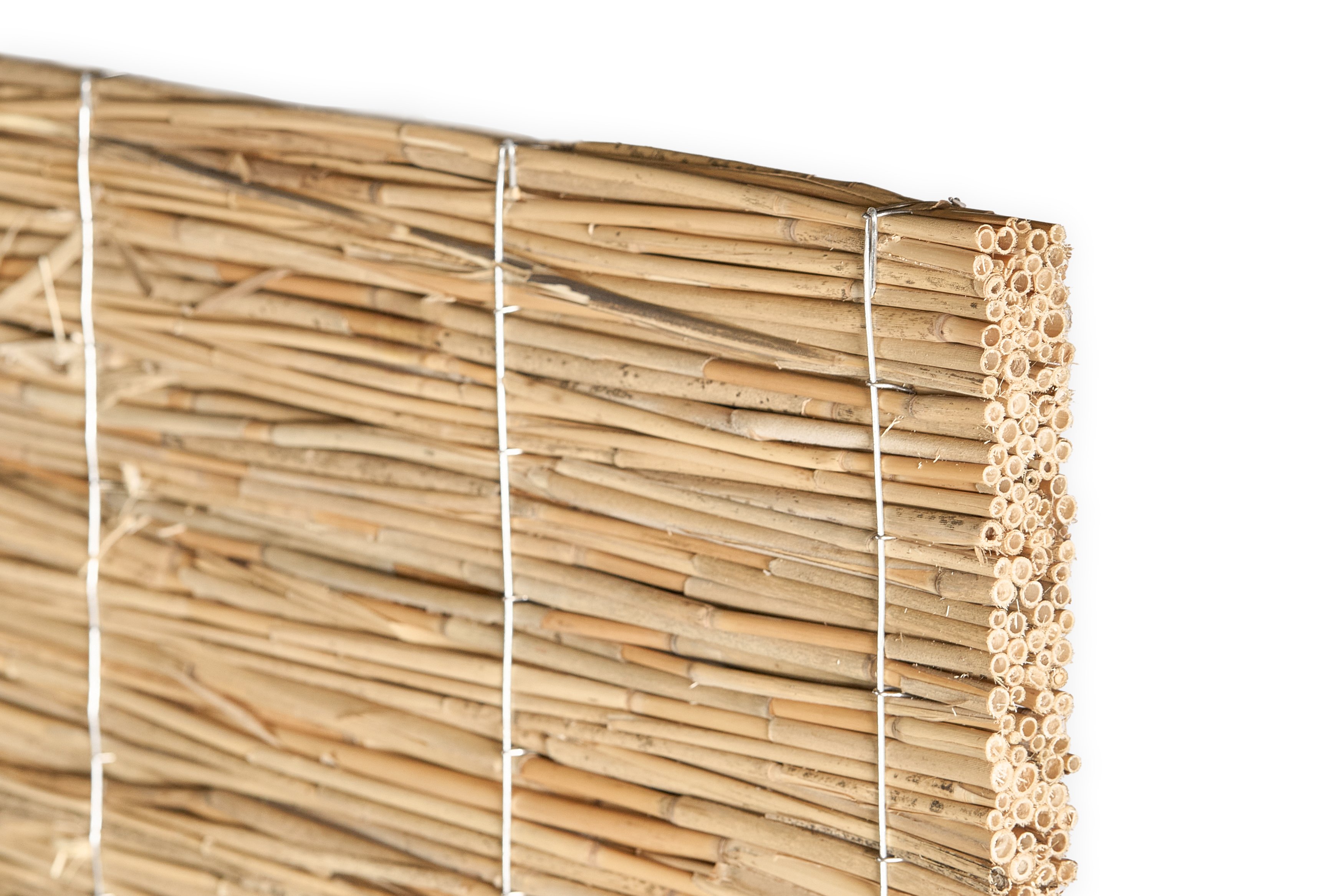 Ausgesuchte Schilfrohrqualität und hochwertige feste Bindung aus 1,8 mm starkem, verzinktem Draht, die Klammern bestehen aus 1,3 mm dickem Edelstahldraht.
