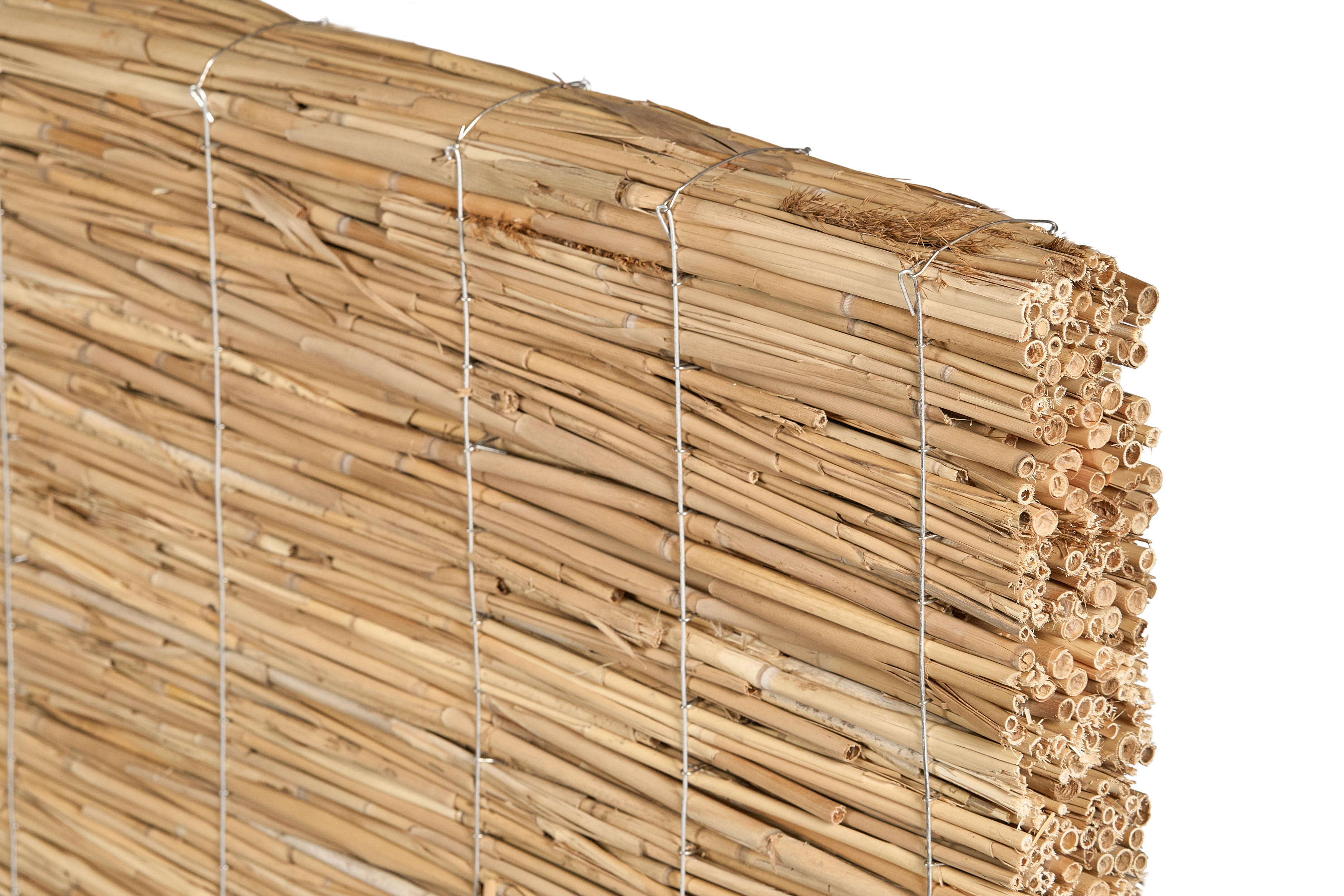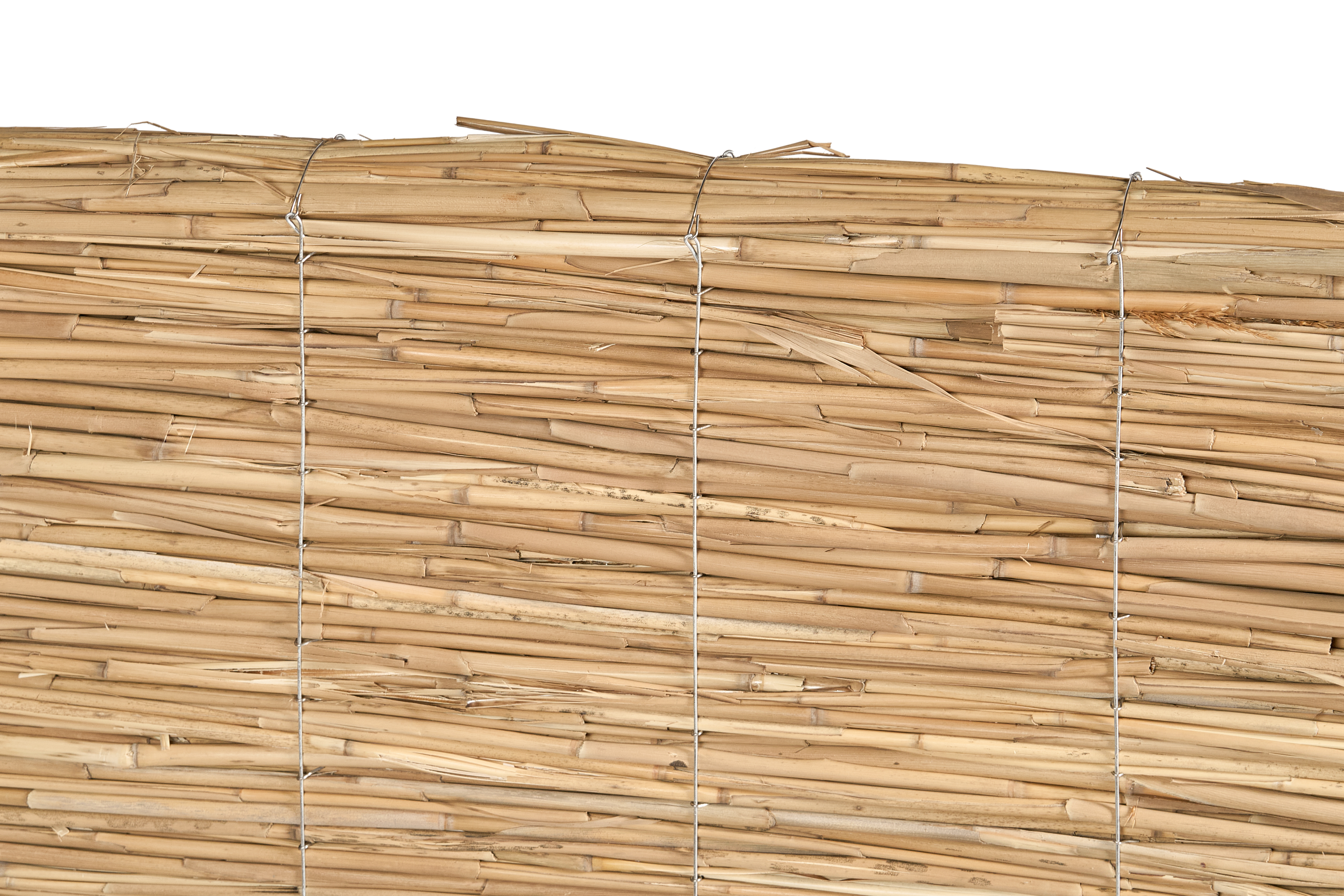 Ausgesuchte Schilfrohrqualität und hochwertige feste Bindung aus 1,8 mm starkem, verzinktem Draht, die Klammern bestehen aus 1,3 mm dickem Edelstahldraht.