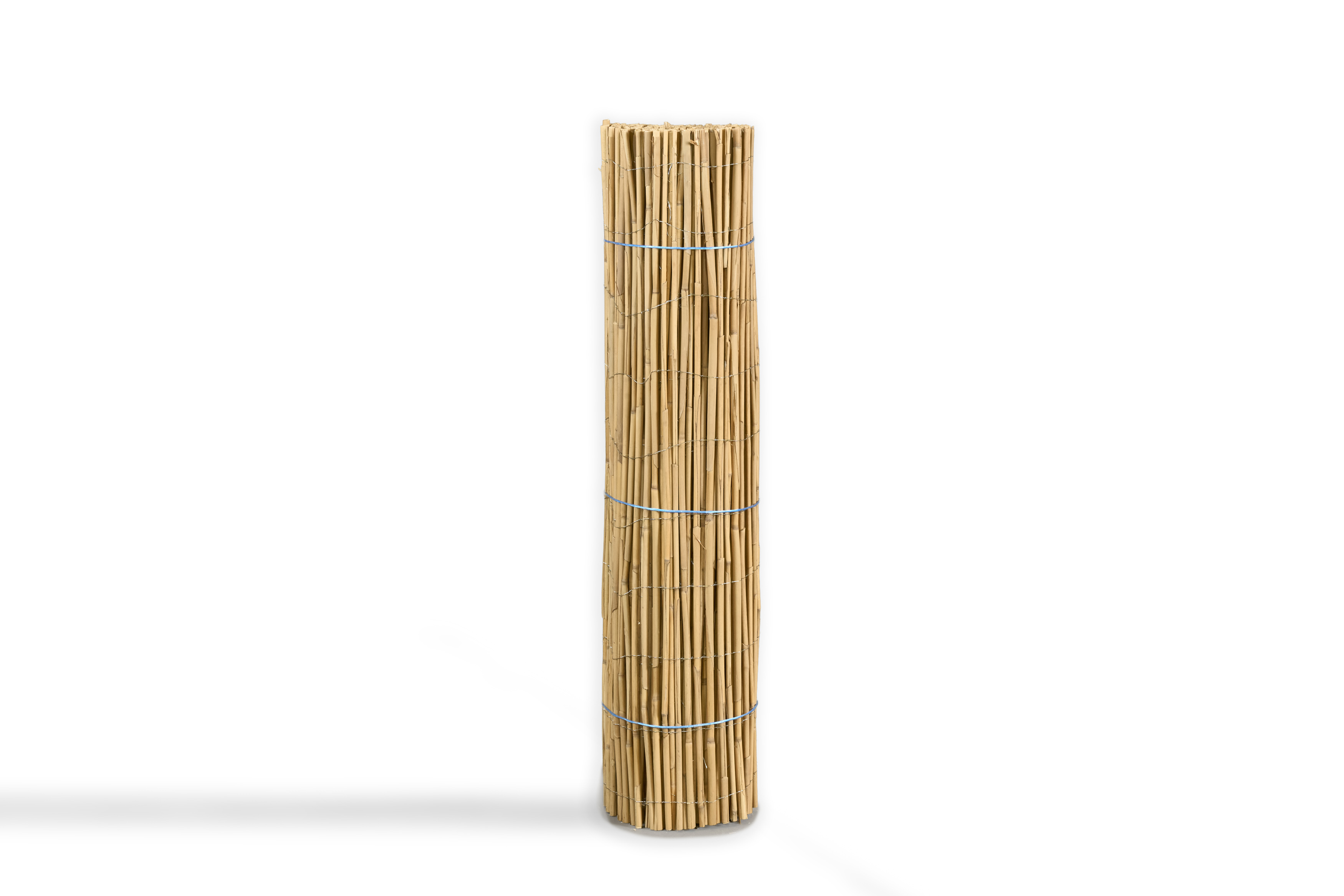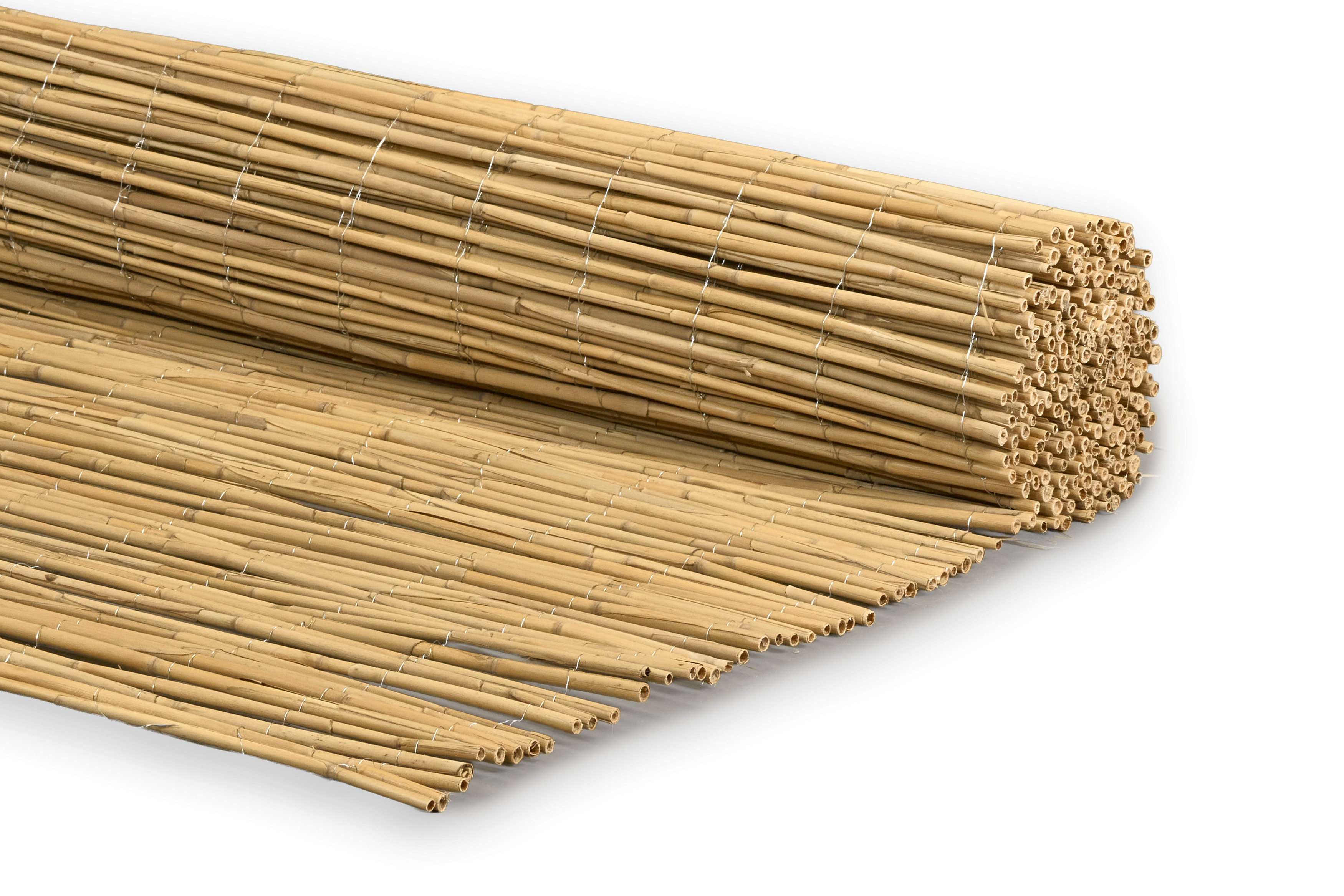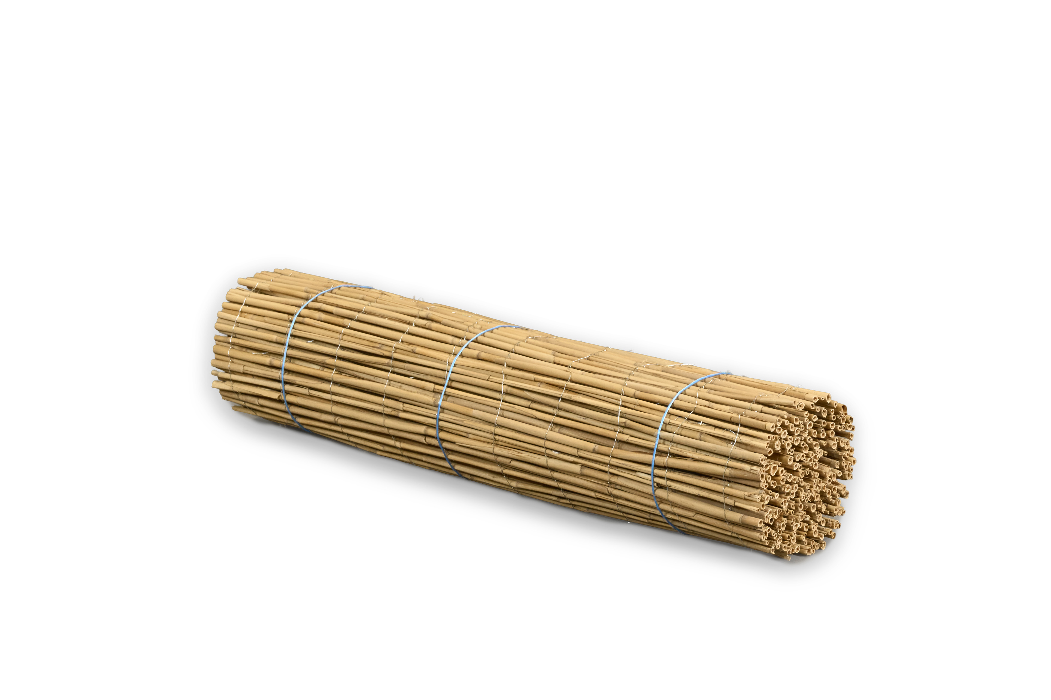 Extra starkes Schilfgewebe aus ausgesuchten, stabilen Halmen. Mit verzinktem Draht gebunden, ca. 60-65 Halme je laufenden Meter. Der Bindedrahtabstand beträgt jeweils ca. 10 cm.