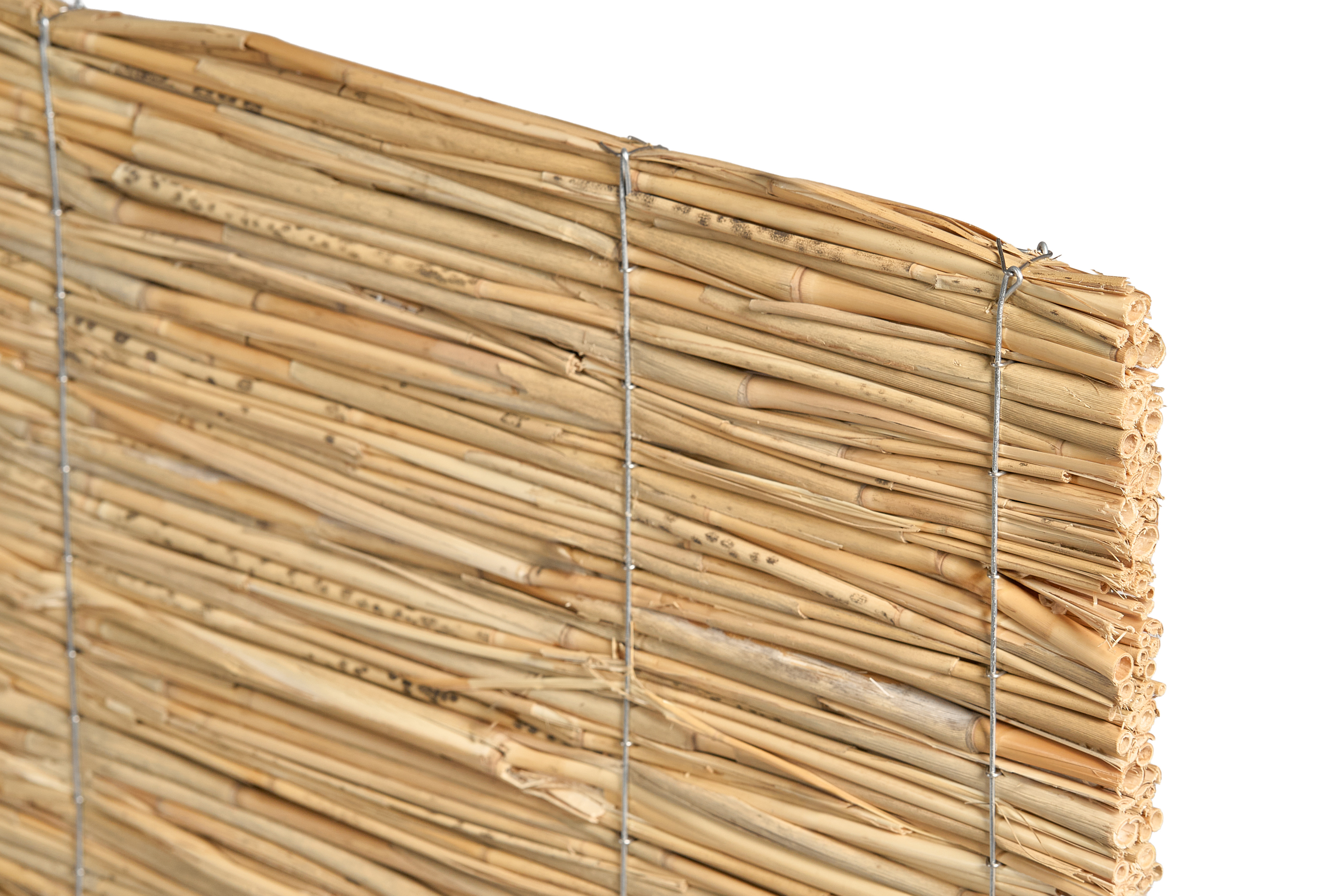 Ausgesuchte Schilfrohrqualität und hochwertige feste Bindung aus 1,8 mm starkem, verzinktem Draht, die Klammern bestehen aus 1,3 mm dickem Edelstahldraht.