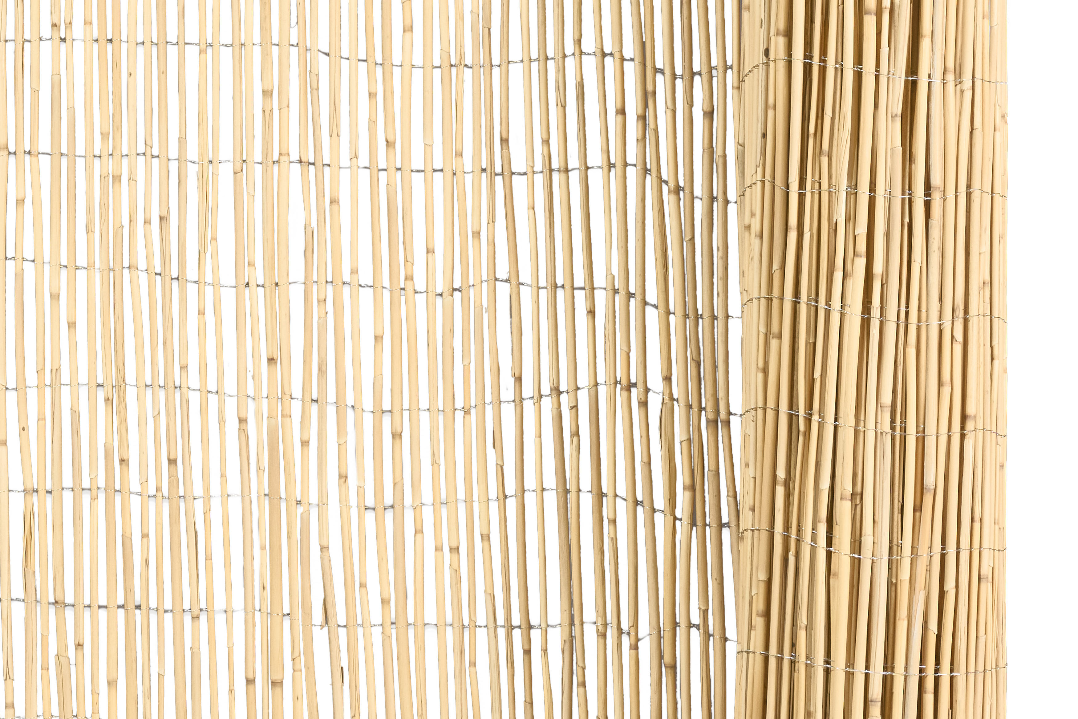 Extra starkes Schilfgewebe aus ausgesuchten, stabilen Halmen. Mit verzinktem Draht gebunden, ca. 60-65 Halme je laufenden Meter. Der Bindedrahtabstand beträgt jeweils ca. 10 cm.