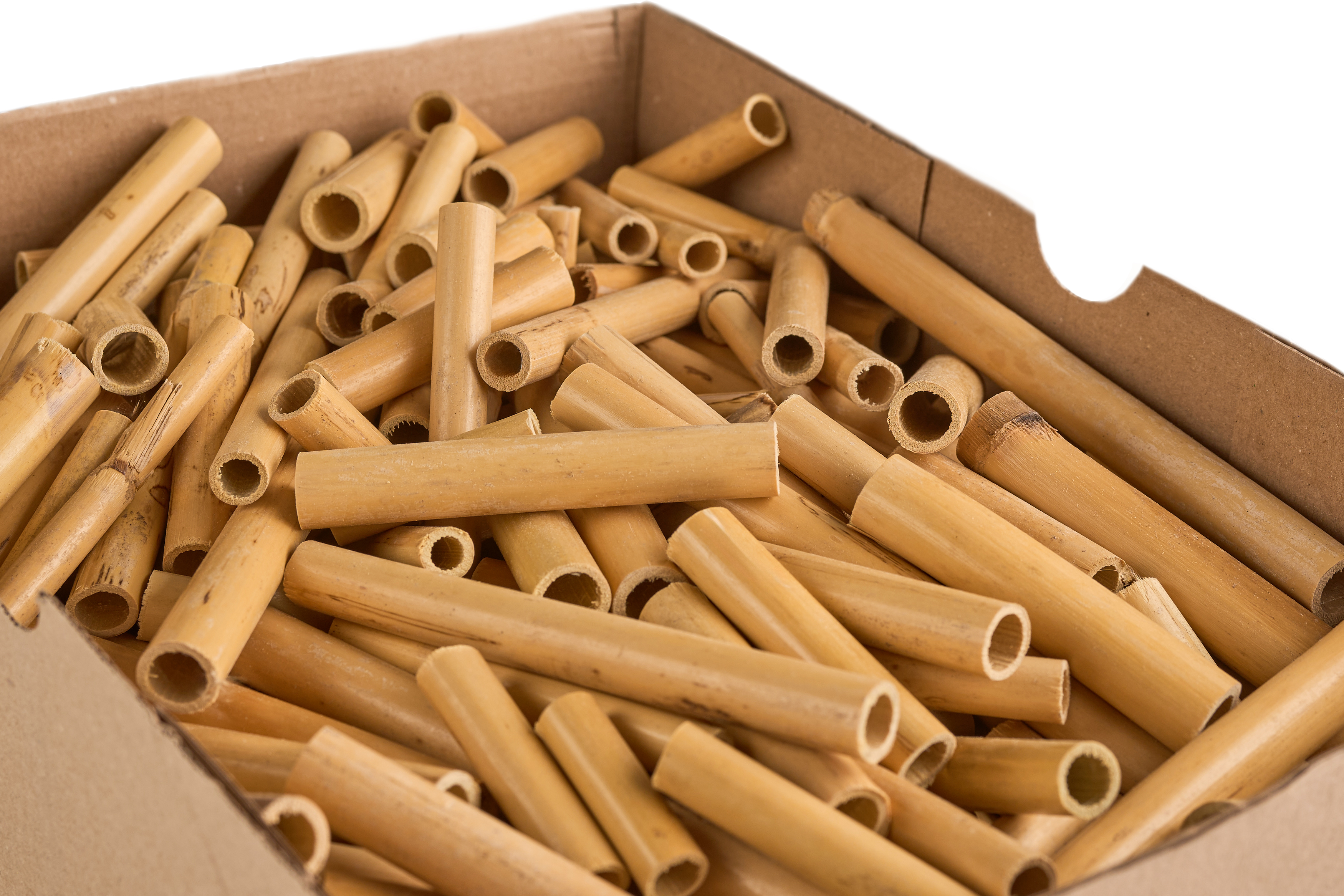 Box mit lose geschütteten Abschnitten von BeeCasa Riesenschilf.