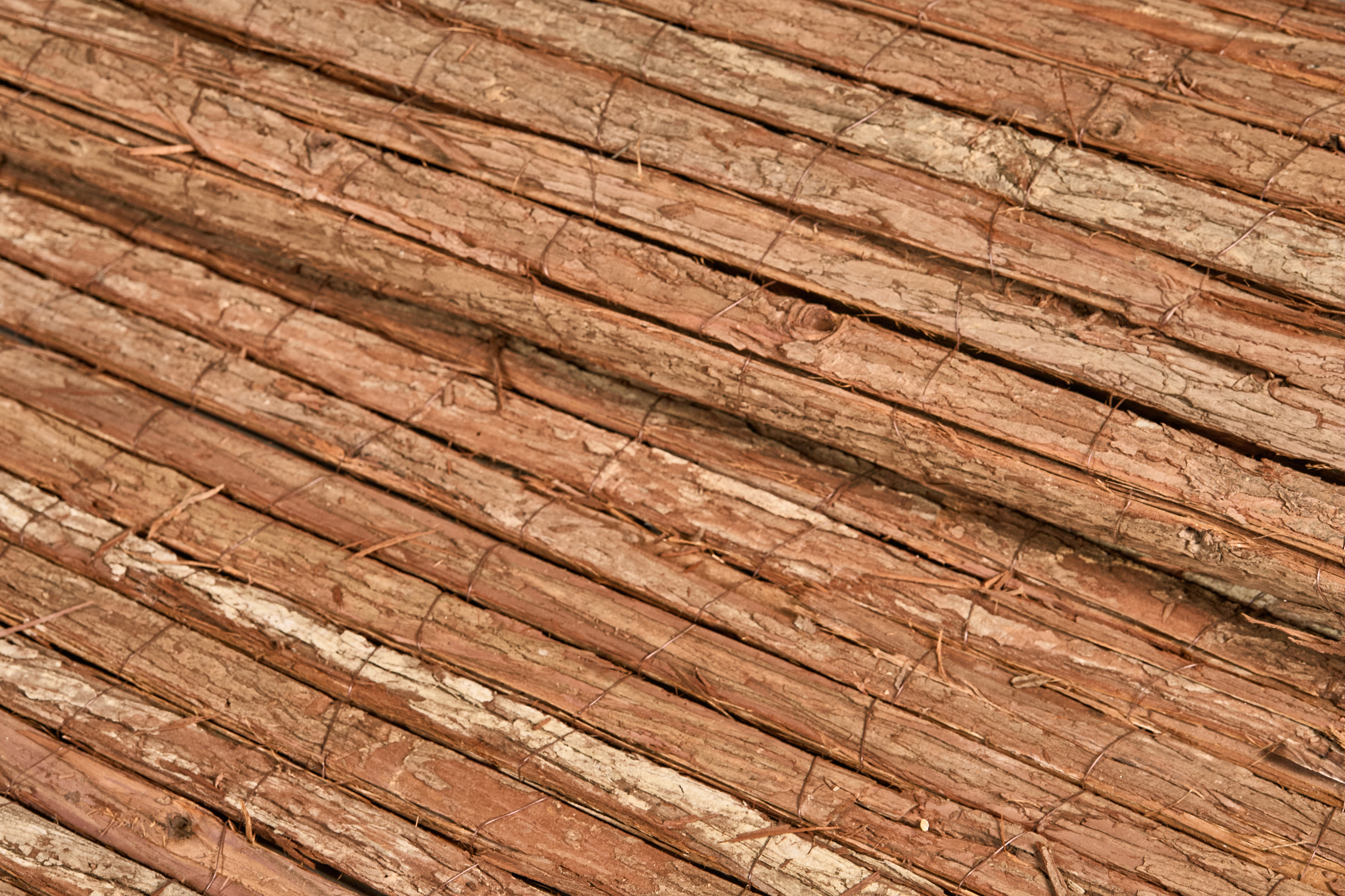 Die etwa 5 cm breiten und zwischen 10 und 15 mm dicken Rindenstreifen verleihen der Matte eine besondere Stabilität und Langlebigkeit. Jedes verwendete Element wird sorgfältig ausgewählt, um eine gleichmäßige – aber natürlich aussehende – Oberflächenstruktur zu gewährleisten, die gleichzeitig natürlich und raffiniert wirkt.
